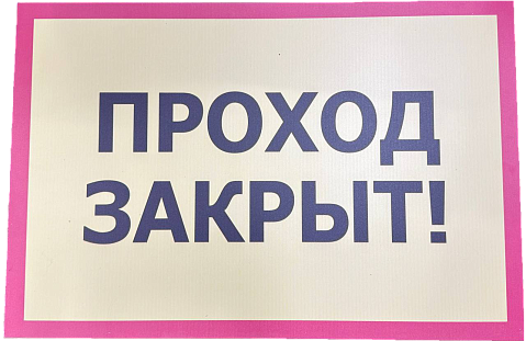 • Запрещающие: «Не курить», «Проход запрещён», «Не включать: работают люди», «Запрещено пользоваться открытым огнём».
